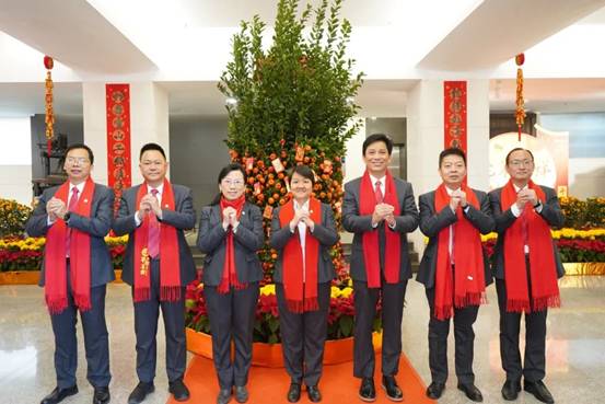 早上8點,紡織公司黨委書記、董事長簡瑋儀帶領(lǐng)全體領(lǐng)導(dǎo)班子成員和各職能部門負(fù)責(zé)人在廣德大廈一樓大堂,整齊列隊熱烈歡迎復(fù)工的員工,為他們送上新春的美好祝福。