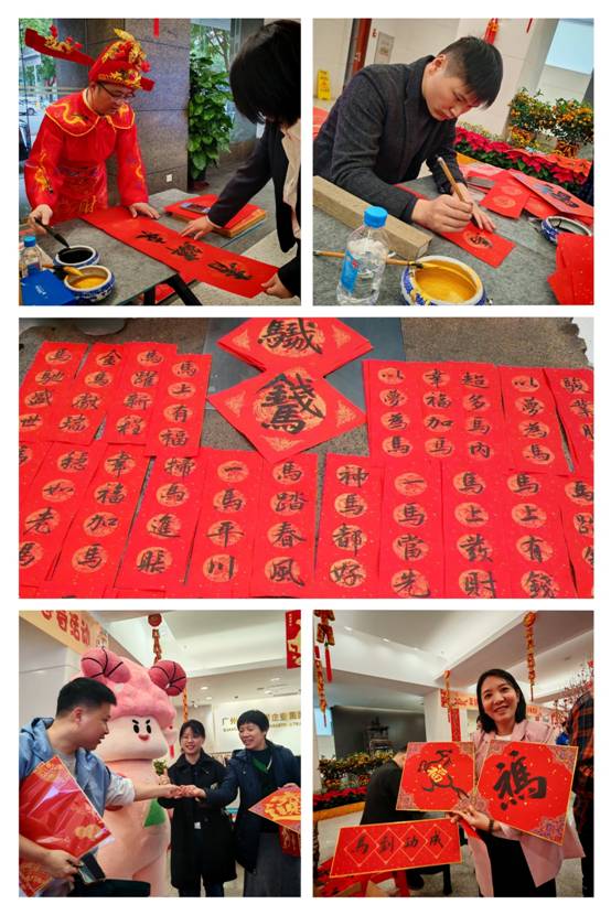 廣德大廈一樓化身紅色文化長(zhǎng)廊,“財(cái)神爺”與“福手”揮毫潑墨,800余副鴻運(yùn)福字與迎春對(duì)聯(lián)躍然紙上,員工歡樂(lè)領(lǐng)取?!爸袊?guó)紅,幸福年”珠江牌“省凳”助力主題展區(qū),由塑料板塊管培生設(shè)計(jì)的吉祥物“江江”手持“珠江”文創(chuàng)禮品穿梭人群,憨態(tài)可掬的互動(dòng)瞬間成為朋友圈“爆款”。